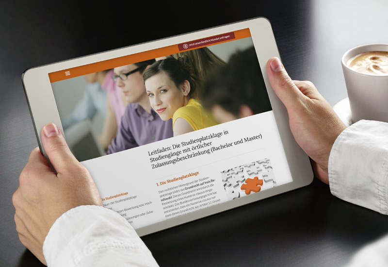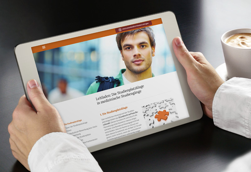 Lesen Sie unseren kostenfreien Leitfaden zur Studienplatzklage in medizinische Studiengänge bzw. unseren Leitfaden für Bachelor- und Masterstudiengänge. Sie erfahren, wie die Studienplatzklage funktioniert, wie wir unsere Strategie Optimal klagen + Kosten begrenzen verfolgen, welche Chancen eine Studienplatzklage in den jeweiligen Studiengängen bietet und mit welchen Kosten Sie rechnen müssen.
